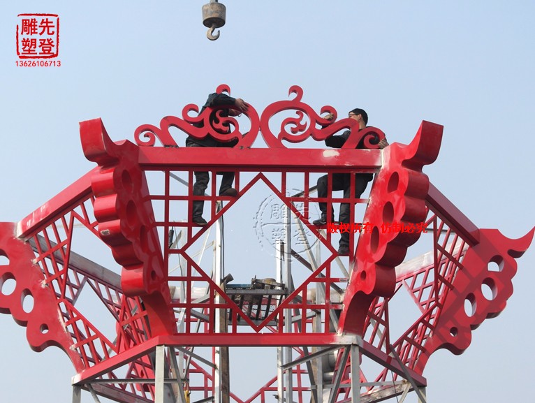 河南省鶴壁市 紅籠燈光雕塑 鴻運當頭雕塑304不銹雕塑 雕塑設計公司